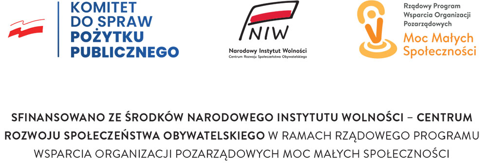 Wydarzenie jest finansowane ze środków Narodowego Instytutu Wolności – Centrum Rozwoju Społeczeństwa Obywatelskiego w ramach Rządowego Programu Wsparcia Organizacji Pozarządowych MOC MAŁYCH SPOŁECZNOŚCI.